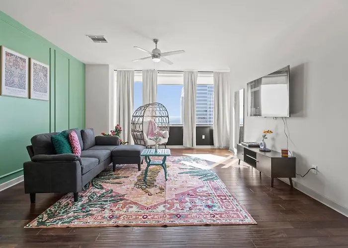 ¿A cuánta distancia está el Apt In Downtown W/Parking+Pool+Movieprojector+View del centro de la ciudad?